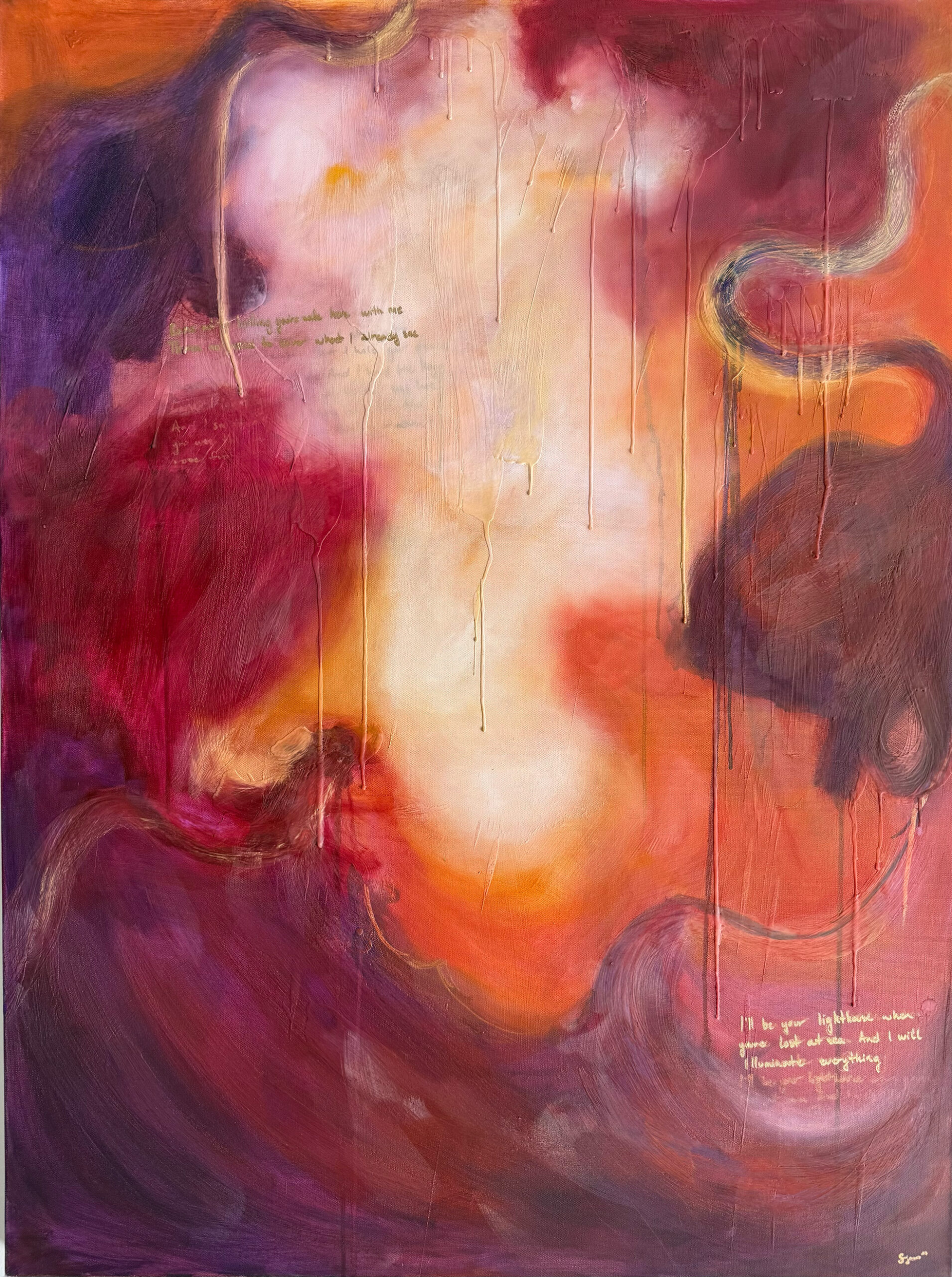 “With this selection of paintings on display titled ‘On the cusp between abstraction and realism’ I am exploring ways to merge abstract intuitive painting with portraiture. When looking at my paintings ask yourself these questions: If you could imagine yourself within the artwork, what sounds would you hear? How would you feel? What would you be?”